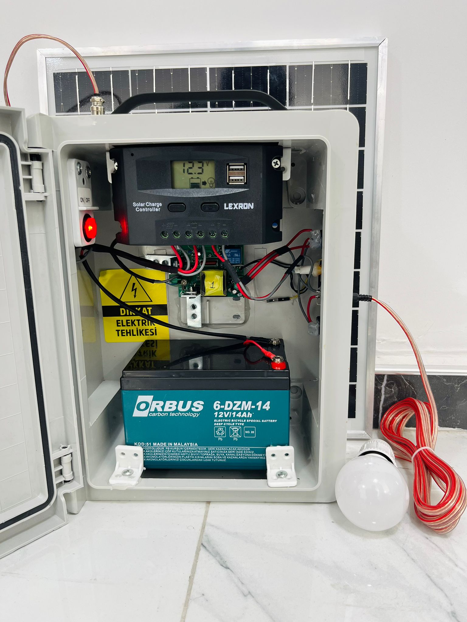 * Zor durumda kalındığında sistemde telefon şarjı ve üzerindeki 1 adet 12v lambayı ortalama 2 saat çalıştırabilirsiniz.